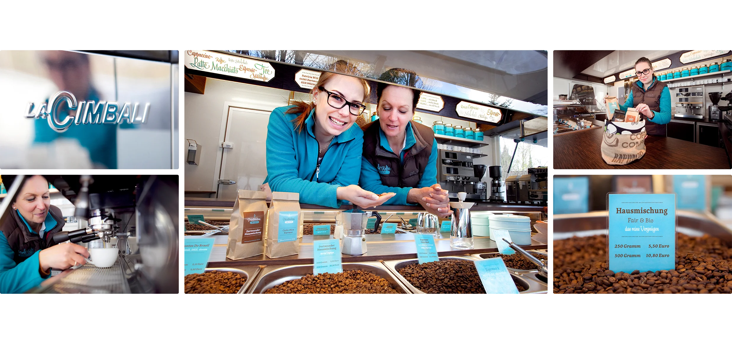 Privatrösterei Witt // Seit vielen Jahren betreibt Patricia Witt ihrem kleinen Kaffeewagen. Um die Enge des Raumes aufzulösen und eine größere Tiefenwirkung zu erzielen, wurden viele Aufnahmen mit einer kurzen Brennweite gemacht. Dadurch entsteht beim Betrachten ein Gefühl von besonderer Nähe zum lebendigen Marktgeschehen.